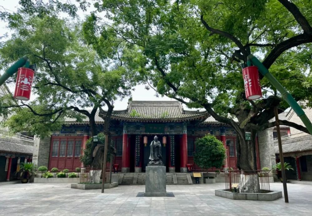 走进关中书院,街道上熙攘的叫卖声和嬉闹声旋即变为阵阵蝉鸣。两侧有着几百年树龄的古槐、皂荚,拥出一条笔直的中轴线伸向孔子立像及其身后的“允执堂”。作为由宋代鸿儒张载所创立的关学思想的传承地和明清两代陕西最高学府,关中书院弦歌不绝,至今依旧承载着教育教学和文化传承的使命,以活态赓续历史文脉,续写文明复兴新篇章。