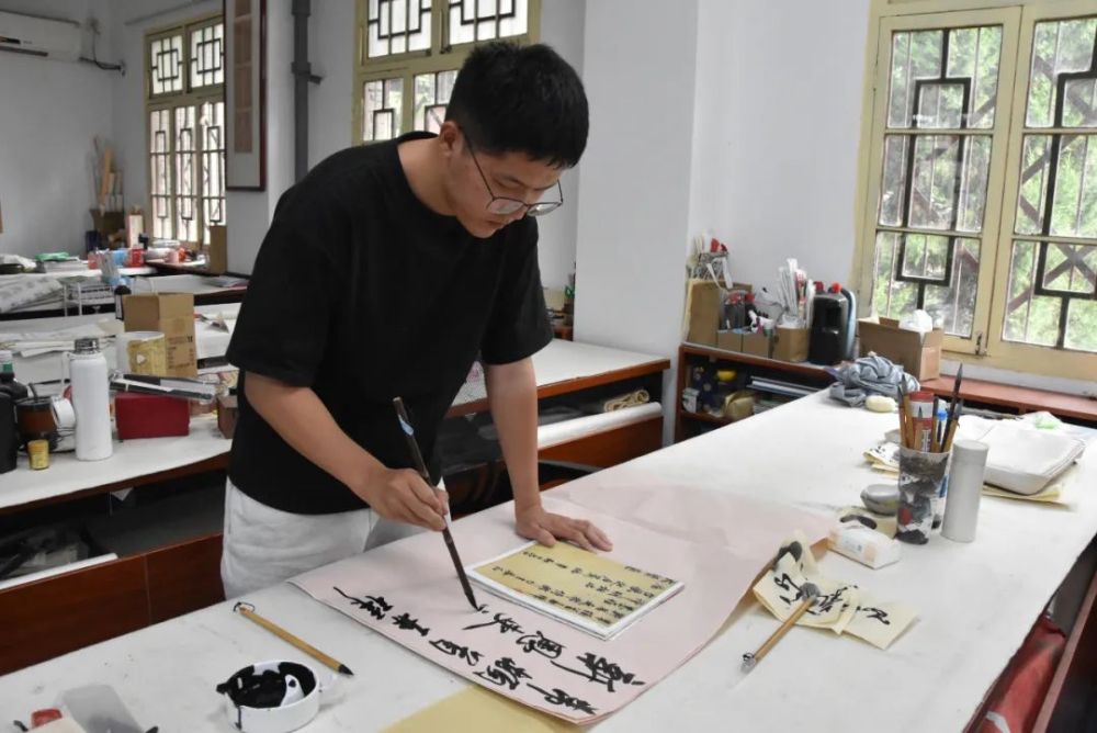 炎炎夏日,在西安文理学院关中书院的校园内,仍有不少学生放弃暑假全力追逐着梦想。正在一间教室里挥毫的大三学生刘正傲屏气凝神,不一会儿就写成一纸气韵连贯的《新恩帖》。作为西安文理学院书法专业学生,他正全力备战考研,希望进入自己心仪的院校继续深造。